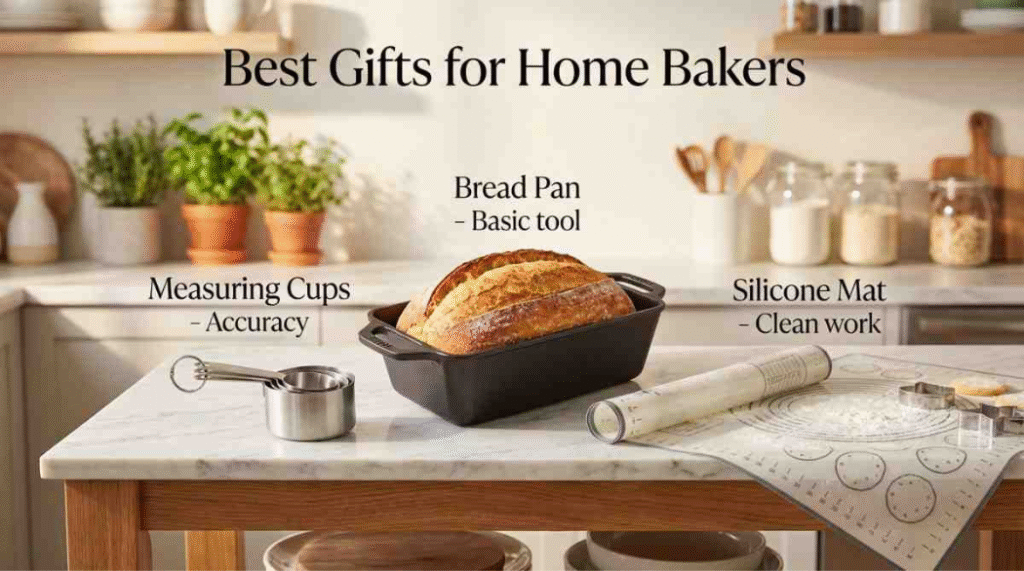 Bread makers love their kitchen tools. When you give them a useful gift, they feel happy. A good gift helps them bake better bread.