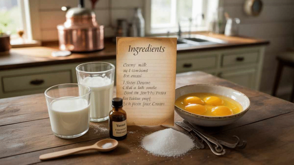 Eggs add richness, milk provides smoothness, and sugar balances everything beautifully. Unlike heavy cream-based versions, this one gives you a naturally creamy texture without being too rich or heavy.