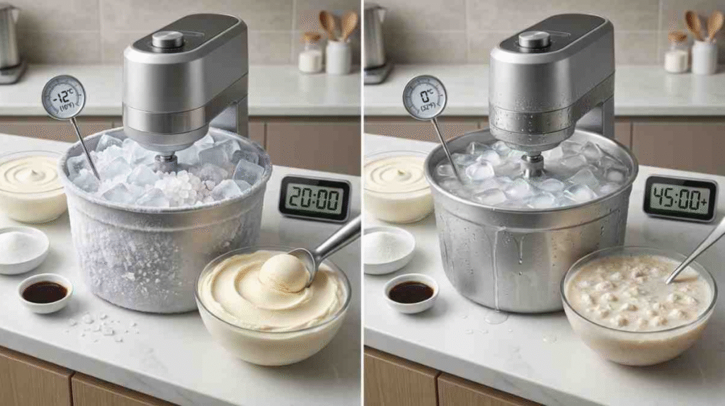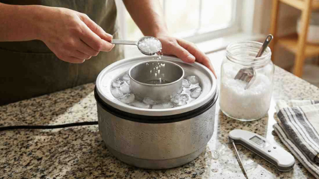 | Using table salt | Melts ice quickly and can damage texture | Always use rock salt or ice cream salt |